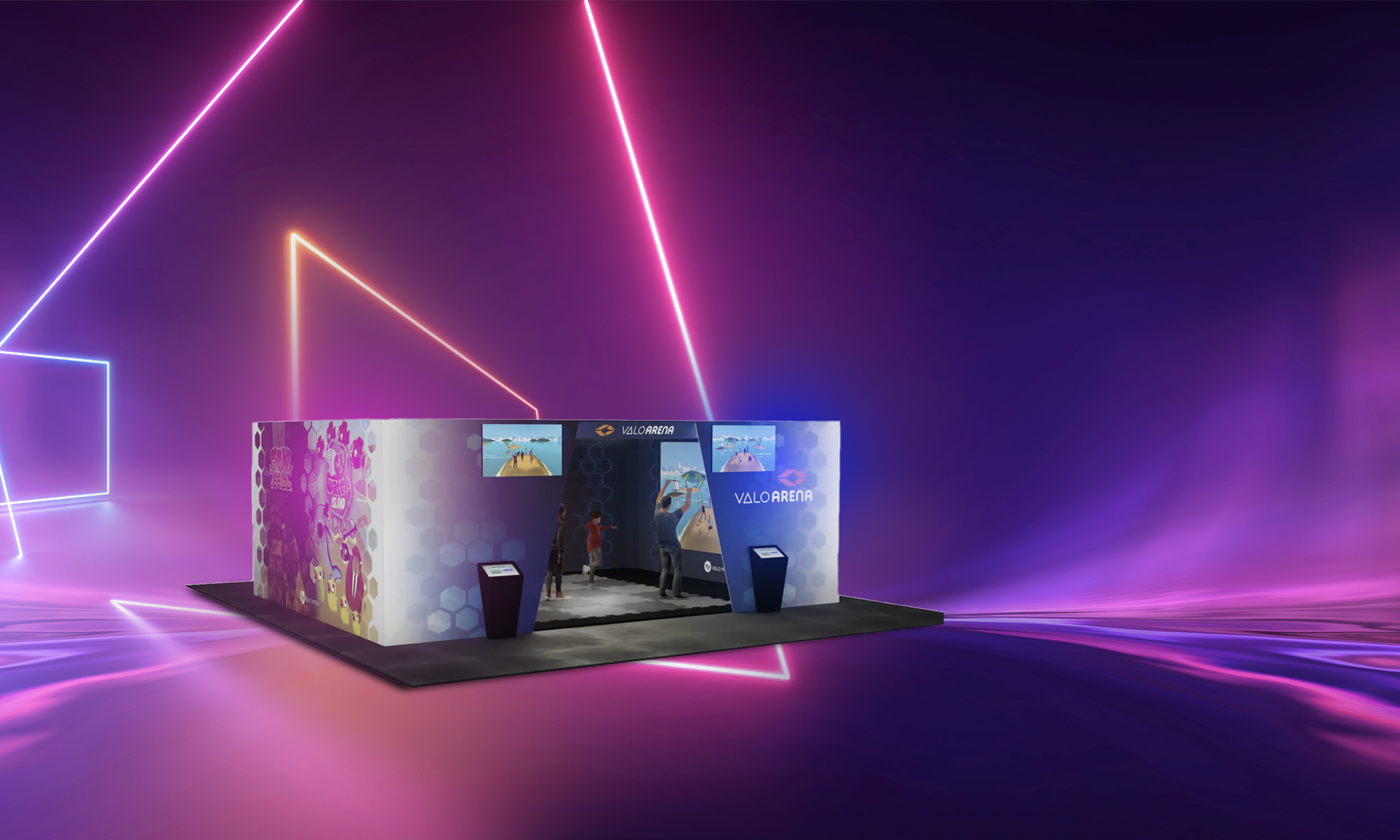 Arrampicati, salta e muoviti liberamente. Valo Arena è la prima piattaforma al mondo in realtà mista capace di ospitare fino a 6 persone. Non servono visori, controller o altri accessori. Il gioco si sviluppa su più livelli. Due schermi, sui lati della struttura, tracciano ogni movimento del giocatore. Può essere utilizzata da bambini, adulti e atleti. Ideale per le famiglie o gruppi di amici.